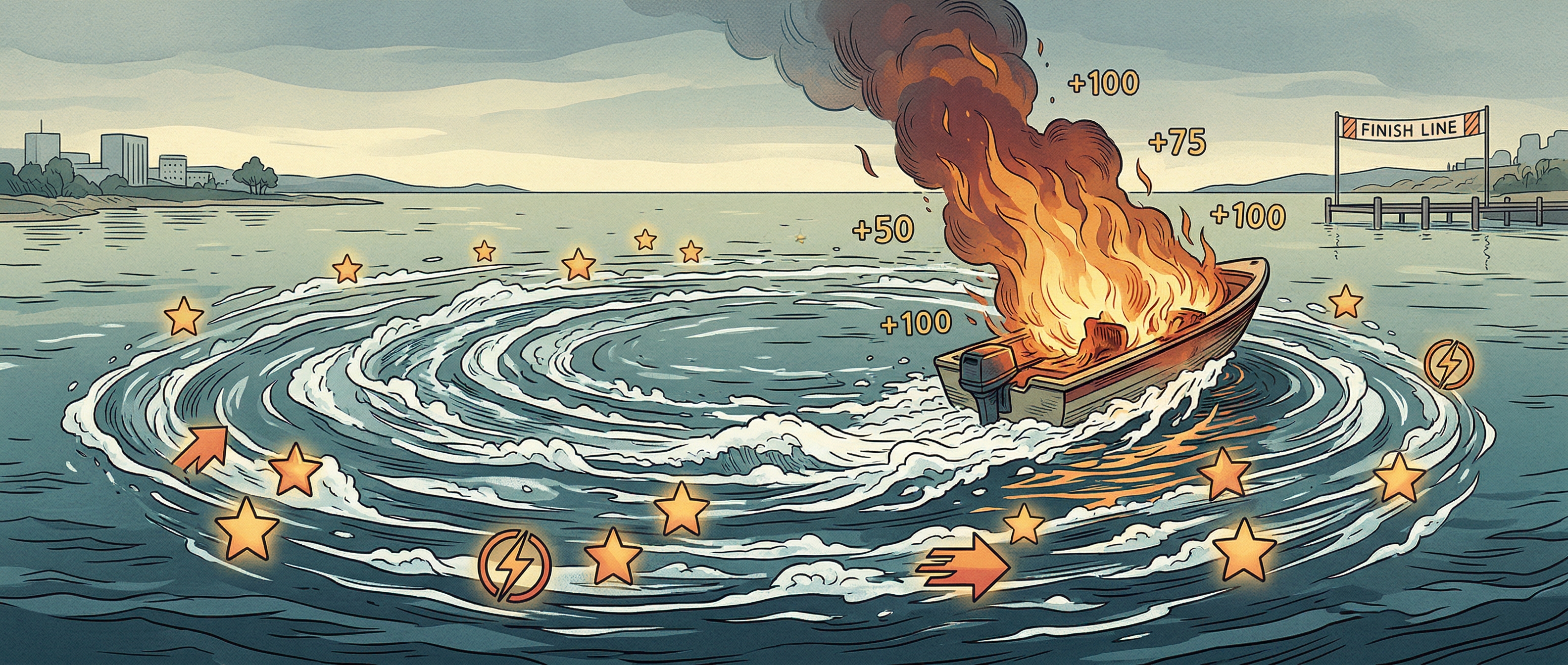 A Amodei y Jack Clark les fascinaba este ejemplo.10 Un agente de inteligencia artificial, entrenado para jugar a CoastRunners (un videojuego de carreras de lanchas), había descubierto que no necesitaba alcanzar la meta: bastaba con recoger bonificaciones en bucle. El sistema hacía exactamente lo que se le había pedido.