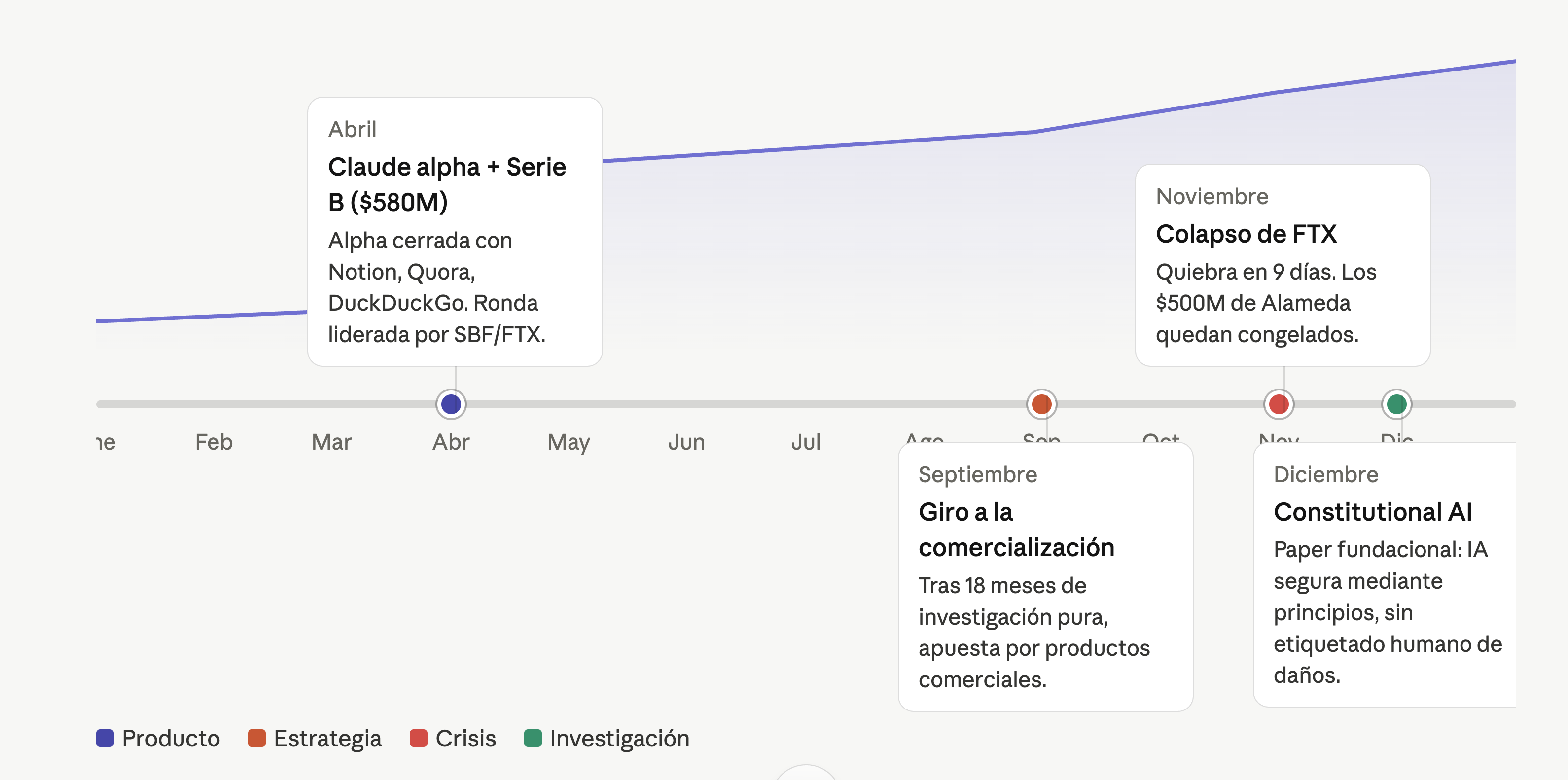 Anthropic, publicación de la Constitución de Claude (mayo 2023); Timeline of Anthropic.